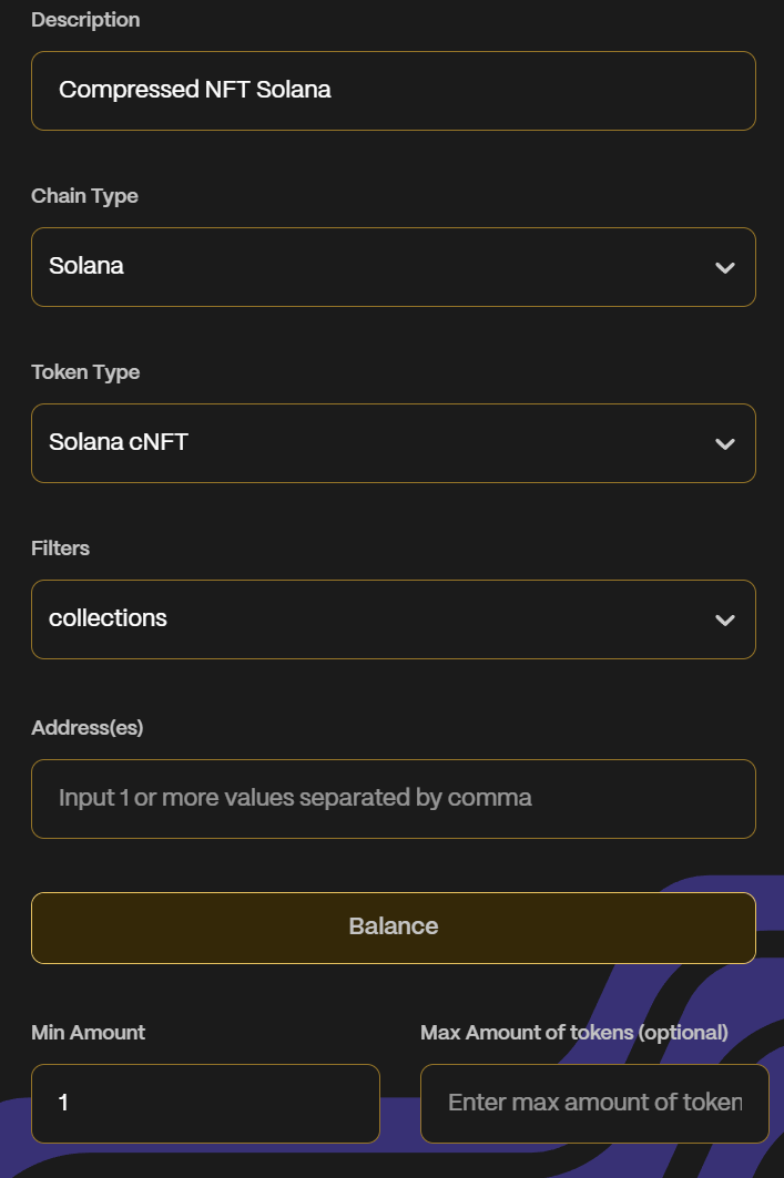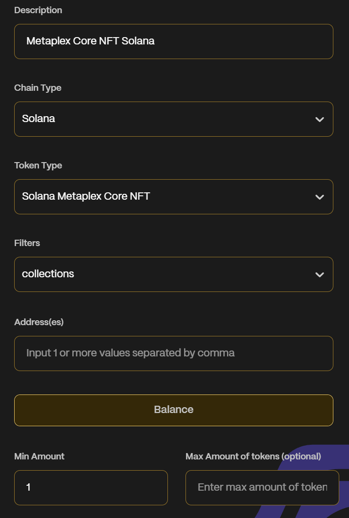 In this guide, we will walk through how to set up Token Gated Rules (TGRs) for every type of Solana NFT we support and help you choose the right configuration for your collection.