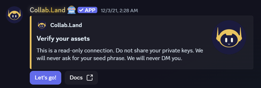 Find the Collab.Land verification channel and click the "Let’s go!" button to begin.