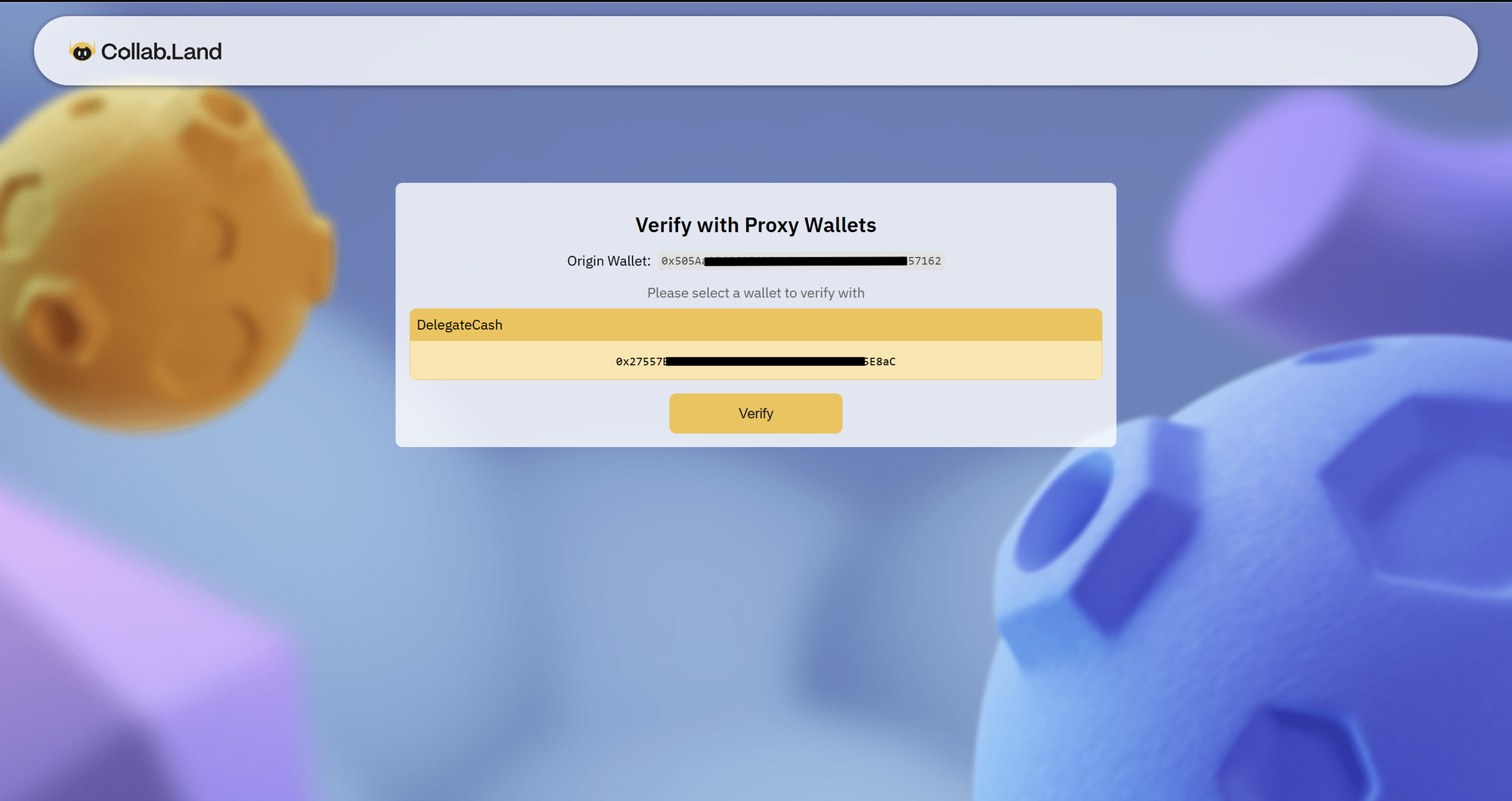 Once your delegation is set up, you can verify in Collab.Land using the delegate wallet.